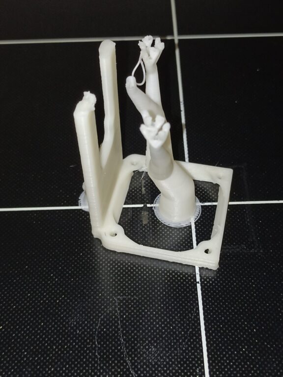 Далее проектируем в Компасе и печатаем на 3D принтере кронштейн из ABS, тоже не с первого раза — уже под конец печати его оторвало от стола, и он ушёл в мусорку.