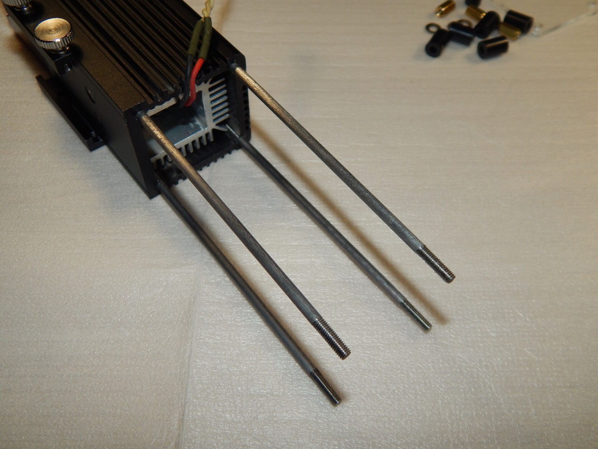 Поскольку новые вентиляторы более чем в два раза выше старого, пришлось искать 100мм болты М3, которых, конечно, нигде в продаже нет. А значит, надо сделать их самому, ну или не болты, а шпильки. Сделать их проще всего из 3мм сварочного электрода, с оббитой обмазкой.